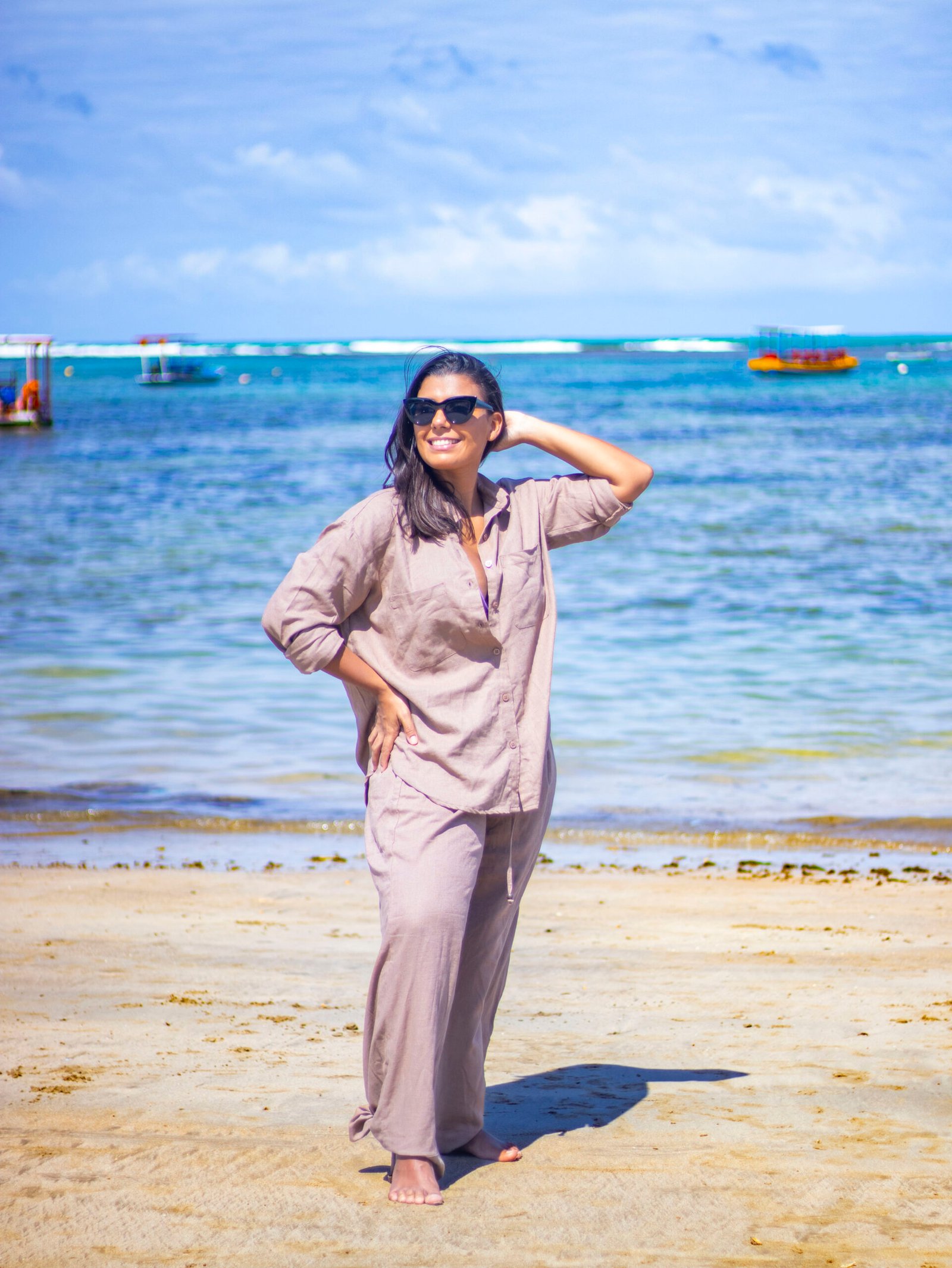 Calça com elástico ajustável na cintura, modelagem ampla e confortável. Pode ser usado desde à praia até o aerolook.